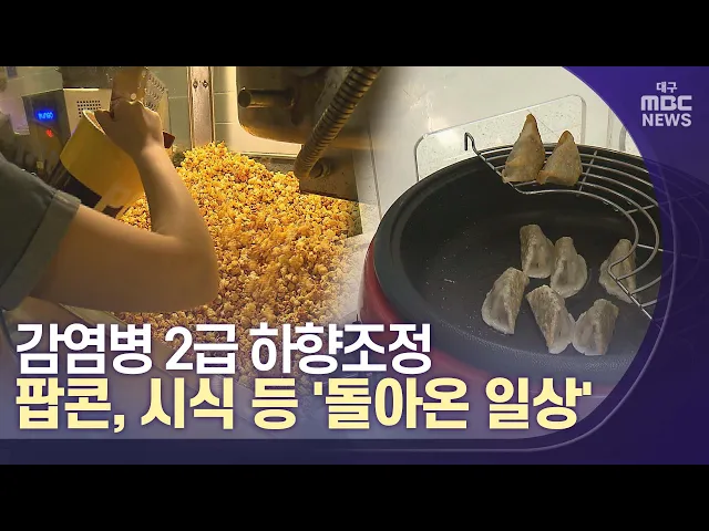 ◀앵커▶영화관 팝콘과 마트 시식. 한동안 우리 기억에서 잊혀졌던 모습이죠,4월 25일부터 코로나 19 감염병 등급이 1급에서 2급으로 낮아지면서 일상이 성큼 다가왔습니다.대구경북 확진자도 감소세를 보이면서 일상 회복을 반기고, 또 기대하는 분위기가 컸습니다.김은혜 기자입니다. ◀기자▶대구의 한 영화관.상영관 내에서...
