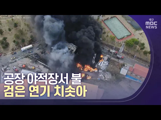 ◀앵커▶4월 15일 오후 대구 달성에 있는 한 공장 야적장에서 난 불이 공장 건물로 번졌습니다.한 때 시커먼 연기가 일대로 심하게 번지면서 재난 문자가 발송되기도 했는데요,다행히 인명피해 없이 큰 불길이 잡혔습니다. 김은혜 기자입니다.◀기자▶시커먼 연기 기둥이 쉴 새 없이 퍼져 나갑니다.소방대원이 물을 뿌리지만 불...
