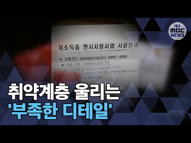◀ANC▶대구시가 지난 20일부터 저소득층에 지급하는소비쿠폰이 저소득층임을 인증하는 '낙인효과'를 낸다는 보도를 최근 해 드렸는데요.이 뿐만아니라 소비쿠폰 안내문에는 저소득층을 모욕하는 단어까지 쓰였습니다.특정 글꼴의 문제라고 해명합니다만, 무엇보다 세심해야 할 복지분야에 이같은 아쉬운 행정이 이어지고...