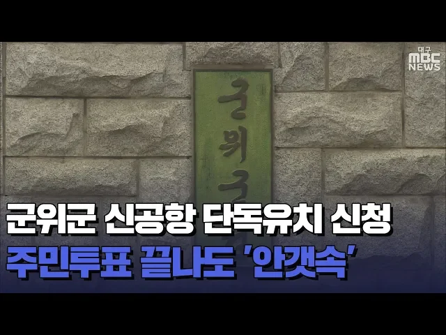 ◀ANC▶대구·군공항 이전 후보지 선정이주민투표를 거치고도 여전히 안갯속입니다.최근 국방부가 의성 비안-군위 소보 공동후보지를 이전지로 무게를 싣는 입장을 밝혔는데요.군위군은 반발하면서 기존 입장에 변화가 없음을 분명히 했습니다.김은혜 기자입니다. ◀END▶ ◀VCR▶지난 21일 대구경북 신공항 이전지 선정...