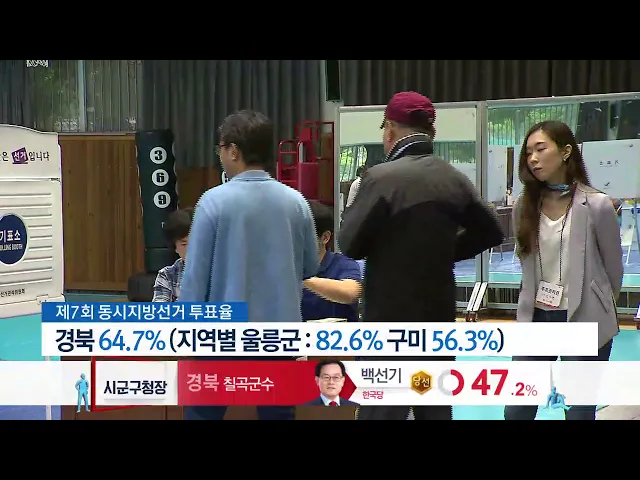 ◀ANC▶ 이번 지방선거는 역대 두 번째로 높은 투표율을 보였습니다. 대구도 4년 전 지방선거 때보다 투표율이 높아졌습니다만 여전히 전국에서 최하위권입니다. 김은혜 기자가 보도합니다. ◀END▶ ◀VCR▶ 제7회 동시지방선거 대구지역 투표율은 57.3%로 나타났습니다. 지역별로는 수성구가 60.2%로 가장 높았고 서구...