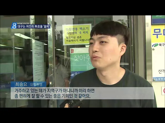 ◀ANC▶ 선거를 닷새 앞두고 사전투표가 오늘과 이틀 동안 진행됩니다. 지난 지방선거보다 투표율은 올랐지만 대구는 여전히 전국에서 가장 낮았습니다. 김은혜 기자입니다. ◀END▶ ◀VCR▶ 주민센터에 마련된 사전투표소에 유권자들 발길이 이어졌습니다. 본인 확인을 거쳐 해당 선거구 투표용지를 받아든 유권자들이 ...