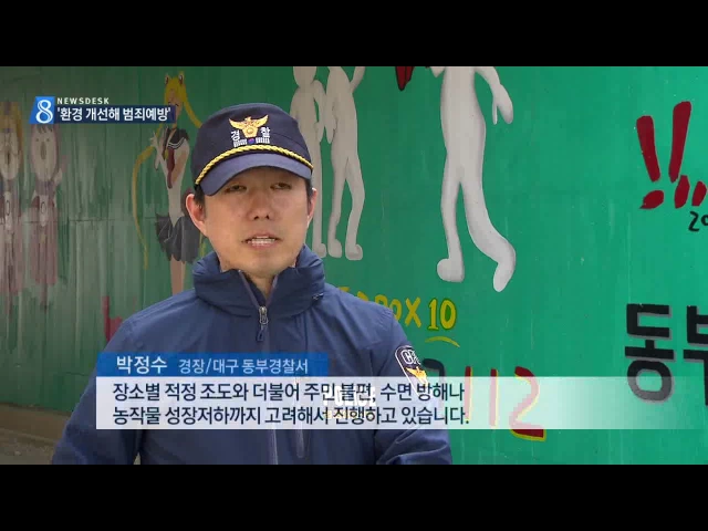 ◀ANC▶ 하루가 멀다하고 일어나는 범죄 때문에 불안해하는 시민들 많으실텐데요.. 최근 지역 사회와 경찰이 주거환경을 개선해 범죄를 예방하는 사업이 좋은 성과를 거두고 있습니다. 김은혜 기자입니다. ◀END▶ ◀END▶ 대구 혁신도시 진입로 굴다리 벽면에 알록달록한 캐릭터 그림이 그려져 있습니다. 해가 지면 다...