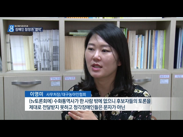 ◀ANC▶ 각 대통령 후보들마다 선거운동에 집중하고 있고 며칠 뒤면 사전투표도 진행되는데요. 장애인 유권자들에게 여전히 투표소는 가기 힘들고 선거정보를 제공받는데도 차별을 느끼고 있습니다. 김은혜 기자입니다. ◀END▶ ◀VCR▶ 대통령선거 사전투표소인 대구 동구의 한 주민센터. 승강기가 없어 휠체어를 이용...