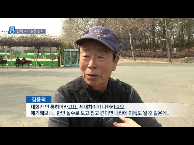 ◀ANC▶ 대통령 탄핵사태를 거치며 세대간 갈등이 극명하게 드러났습니다. 박 전 대통령에 대한 지지가 특히 높았던 대구·경북에 더욱 두드러졌는데요. 대통령은 탄핵으로 물러났습니다만, 표면화된 갈등은 앞으로 풀어야 할 큰 과제로 남았습니다. 김은혜 기자입니다. ◀END▶ ◀VCR▶ 학업과 취업에 치인 젊은 층에게...
