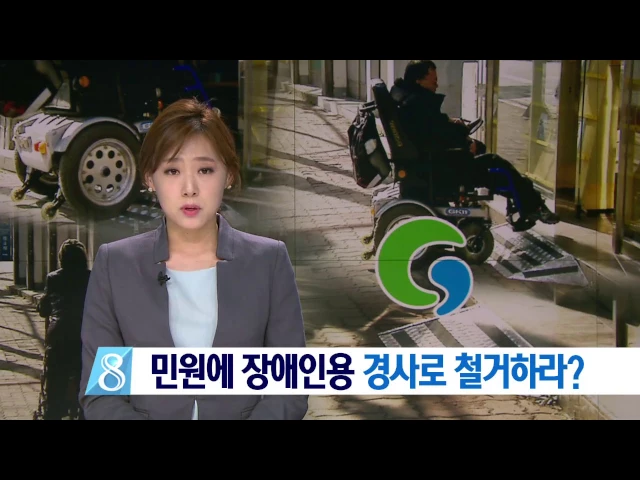 ◀ANC▶ 인도나 각 건물의 입구를 보면 출입구 높이 차이를 없애기 위해 경사로를 만들어 놓은 것을 볼 수 있을 텐데요. 이게 사실상 다 불법이라고 하는데 어떻게 생각하십니까? 경산에서 장애인용 경사로를 놓고 불법이라며 철거하라는 행정기관과 행정 편의주의라는 업주와 장애인단체가 맞서고 있습니다. 김은혜 기자...