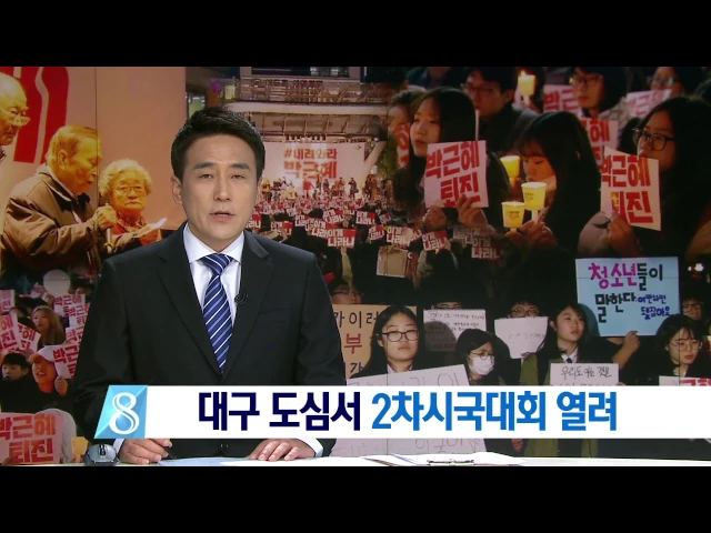 ◀ANC▶ 지금 이 시간 대구 도심에서는 박근혜 대통령 퇴진을 요구하는 2차 시국대회가 열리고 있습니다. 지난 주말 1차 시국대회에 3천명 가량이 모여 분노한 민심을 보여줬는데요. 오늘은 상황이 어떤지 취재기자 연결해 알아보겠습니다. 이상원 기자 전해주시죠. ◀END▶ ◀VCR▶ 네, 오늘 저녁 7시부터 대구시 중구 ...