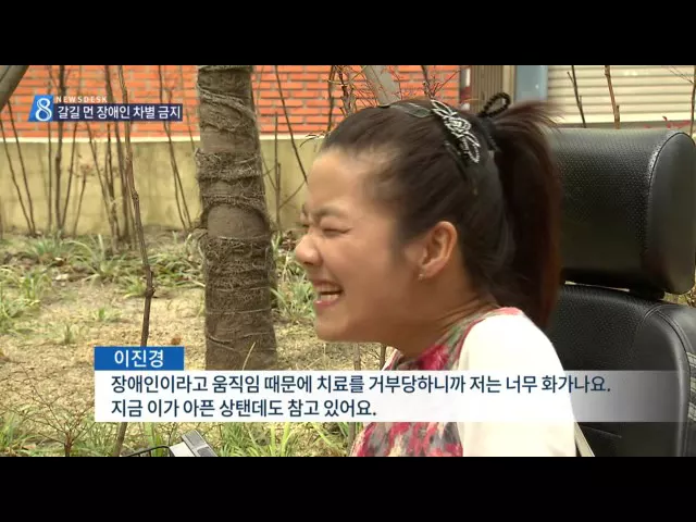 ◀ANC▶ 오늘은 36주년을 맞는 장애인의 날입니다. 장애인 차별 금지법이 시행된 지도 올해로 8년이 됐는데요. 예전보다 나아졌다고는 하지만 장애를 이유로 진료나 대출이 거부당하는 등 차별은 여전합니다. 김은혜 기자입니다. ◀END▶ ◀VCR▶ 뇌병변장애 1급인 이진경씨는 충치 치료를 위해 치과 두 곳을 다녔지만 ...