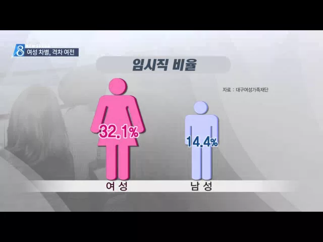 어제는 UN이 정한 여성의 날이었는데요, 여성들의 경제활동 참여는 꾸준히 늘고 있지만 특히, 대구의 경우 저임금과 고용불안 등 여러 측면에서 여성들이 차별과 격차에 시달리고 있는데요.. 엄기복 대구여성가족재단 일가정양립지원센터 총괄팀장 (남자) "우리 지역이 보수적인 것도 영향이 있죠. 앞으로 다양한 분야에서 ...