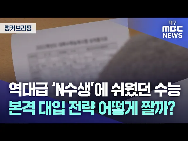 앵커 브리핑 시작합니다. 11월 14일 2025학년도 대학수학능력시험이 치러졌죠?이번 수능은 'N수생' 참여가 많이 늘어난 것이 특징입니다.의과대학 모집인원의 대규모 증원이 이뤄졌고, 이른바 '무전공 학과'로 불리는 전공 자율 선택제 선발 규모가 커지면서 상위 대학 합격 기대 심리가 어느 때보다 높아졌기 때문입니다....