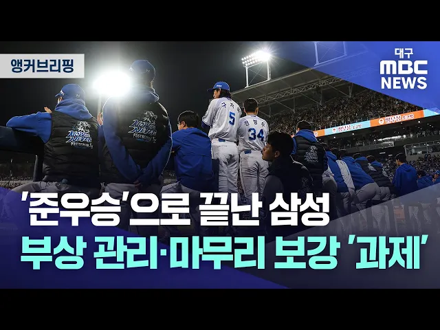 앵커 브리핑 시작합니다. 프로야구 삼성 라이온즈가 2024 포스트 시즌을 준우승으로 마무리했습니다.9년 만에 오른 한국시리즈, 기아타이거즈와의 맞대결은 처음부터 쉽지 않은 승부였습니다.1차전부터 비로 인한 사상 초유의 서스펜디드 선언이 있었고, 김헌곤의 홈런으로 1-0으로 앞서던 삼성은 아쉬움을 삼켜야 했습니다...