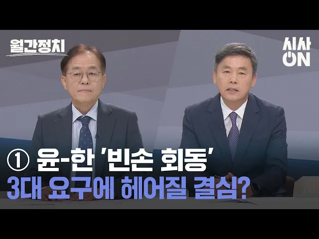윤석열 대통령과 한동훈 대표의 만남이 빈손 회동으로 끝났습니다. 한 대표가 김 여사 대외 활동 자제와 인적 쇄신 등 3대 요구를 이야기했으나 윤 대통령이 사실상 거절 의사를 밝혔습니다. 이와 함께 정치권을 흔들고 있는 김건희 여사와 정치 브로커 명태균 씨에 대한 문제도 합의를 이루지 못했습니다. 이번 월간 정치...