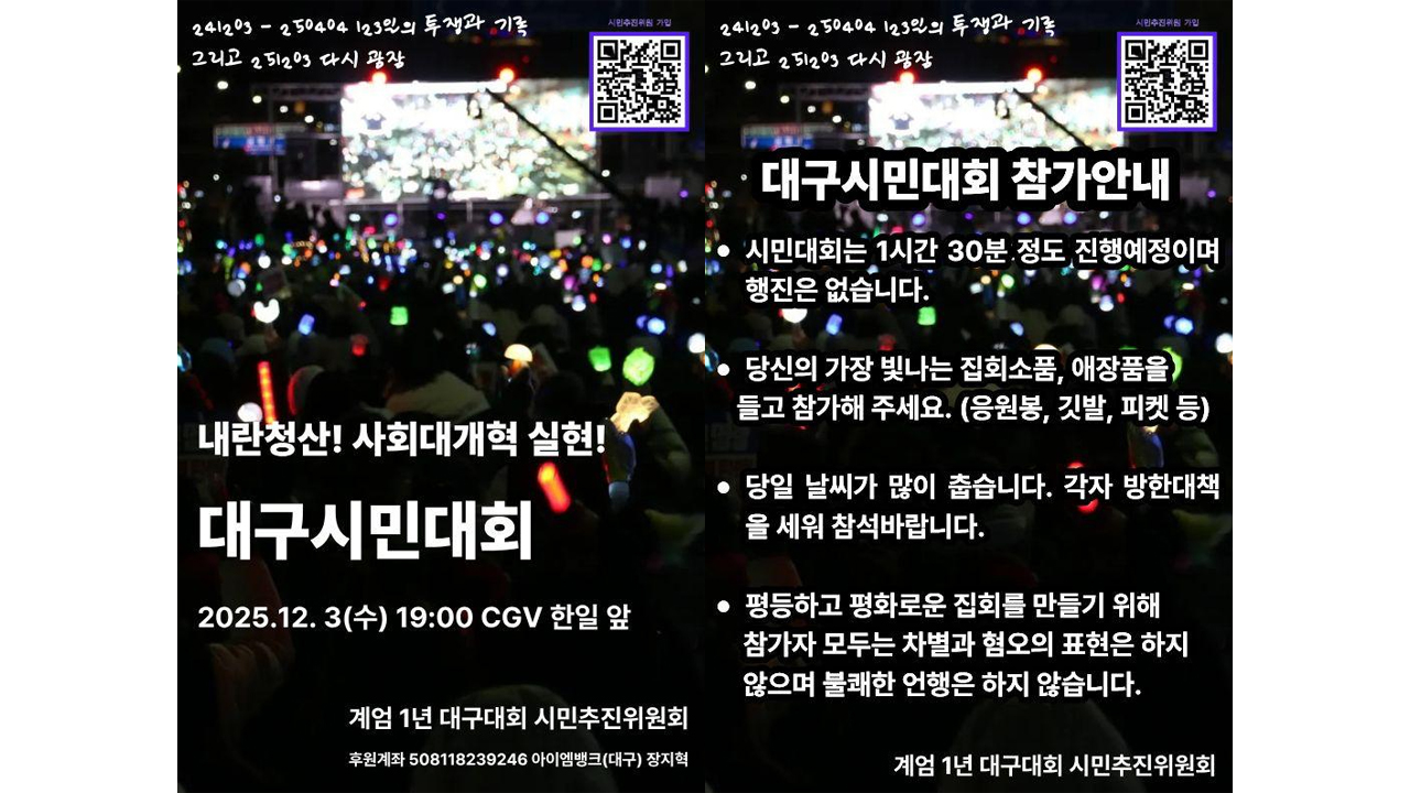 비상계엄 1년···대구 도심서도 12월 3일 시민대회 열려