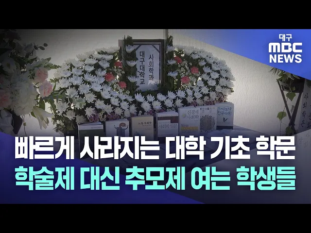 ◀앵커▶지역 대학교가 신입생을 모집하고 있는데, 학령 인구 감소, 수도권 집중 등으로 애를 먹고 있습니다.지역의 한 대학교는 사회학과와 법학부 등도 없애기로 결정했는데요.학생들은 사라지는 학문을 애도한다며 장례식을 치렀습니다. 지방 대학의 위기가 기초 학문의 소멸로 이어지고 있는건데, 손은민 기자가 전해드립...