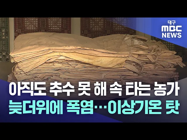 ◀앵커▶내일은 '입동'입니다.이맘때면 논에는 가을걷이가 끝나고 볏짚만 쌓여 있어야 하는데, 아직 추수를 마치지 못한 농가가 많다고 합니다. 올해 유난했던 폭염과 늦더위에 장마처럼 가을비가 계속되는 이상기후 때문입니다.손은민 기자입니다.◀기자▶미곡처리장에 수확한 벼를 팔러 온 농민은 한 둘뿐입니다.그마저도 겨...