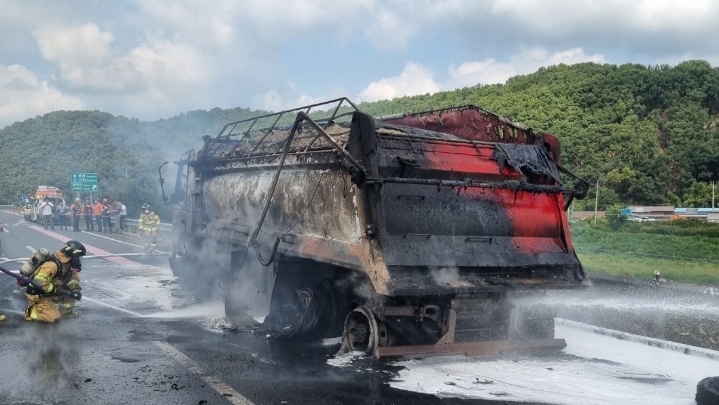 사진 제공 경북소방본부9월 9일 오전 11시 50분쯤 경북 경주시 건천읍의 한 도로에서 달리던 25톤 화물차에 불이 나 40여 분 만에 꺼졌습니다.30대 운전자가 불을 끄려다 화상을 입었고 화물차가 전소해 소방서 추산 5,200만 원의 재산 피해가 났습니다.소방 당국은 타이어에서 불이 시작된 것으로 보고 정확한 화재 원인을...