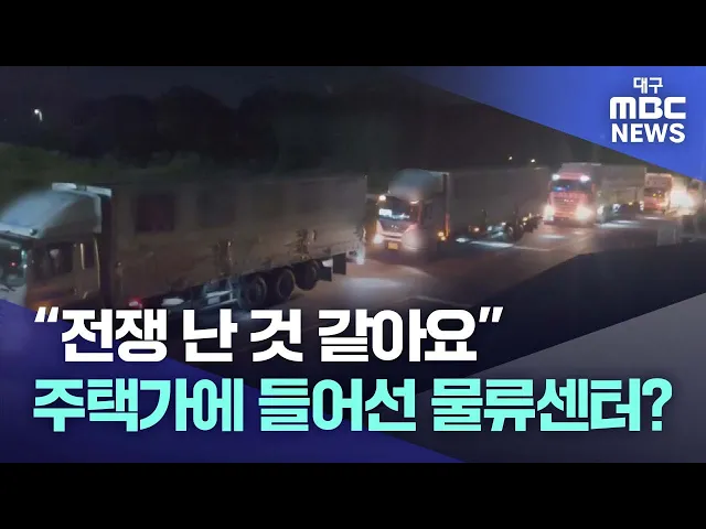 ◀앵커▶택배 시장이 커지면서 최근엔 도심에도 물류센터가 들어서는 경우가 많은데 인근 주민들이 밤낮으로 고통받고 있는 곳이 있습니다.경북 칠곡군 왜관읍의 한 동네인데요.소음과 빛 공해에 시달리고 사고 위험에 마을 길 이용도 쉽지 않다고 하는데, 규제할 방법이 마땅치 않습니다.손은민 기자입니다.◀기자▶한밤중 고...