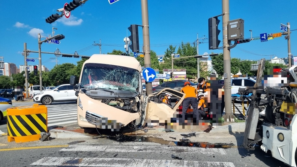 경북 경주 교차로서 미니버스-SUV 차량 사고···1명 숨지고 9명 다쳐