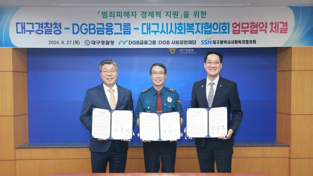 사진 제공 대구경찰청대구경찰청이 DGB금융그룹, 대구시사회복지협의회와 범죄 피해자 경제적 지원을 위한 업무 협약을 맺었습니다.경찰이 범죄 피해로 생계가 어려워 지원이 필요한 피해자를 추천하면 DGB 금융그룹이 지원 기금을 편성하고 대구시사회복지협의회가 기금을 관리하며 피해자에게 집행합니다.대구경찰청은 최...