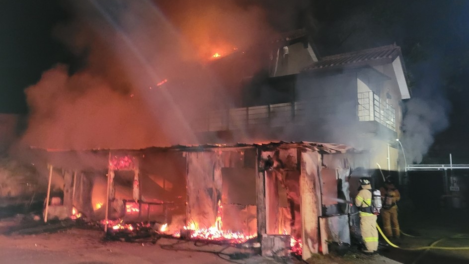 사진 제공 경북소방본부9월 21일 오후 8시 38분쯤 경북 청도군 풍각면의 한 2층짜리 펜션에서 불이 나 3시간여 만에 꺼졌습니다.다친 사람은 없었고 80여㎡ 규모 펜션 1개 동이 모두 불에 타 소방서 추산 4,900만 원의 재산 피해가 났습니다.경찰과 소방 당국은 정확한 화재 원인을 조사 중입니다.