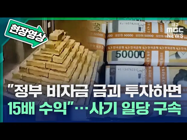 금괴 유통에 투자하면 고액의 배당금을 준다고 속여 수억 원을 가로챈 일당이 구속됐습니다.대구경찰청 반부패·경제범죄 수사대는 60대 남성 2명을 사기 혐의로 구속했습니다.이들은 '정부가 비자금으로 보관하는 금괴와 5만 원권 지폐 등 유통에 투자하면 원금의 15배 이상을 배당금으로 받을 수 있다'라고 속여 2023년 4...