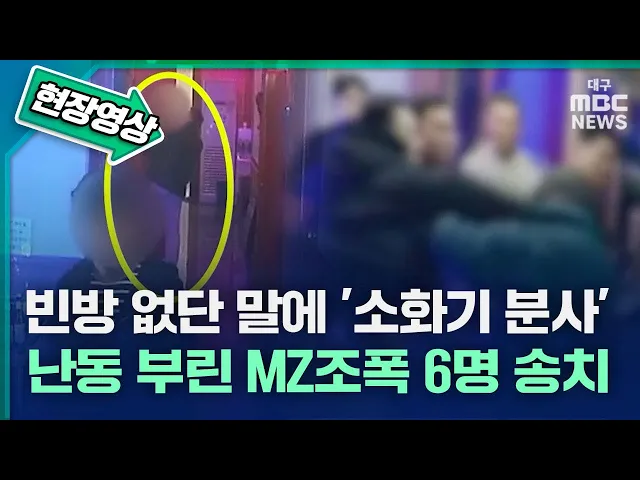 유흥주점에서 소화기를 분사하고 난동을 부린 혐의로 'MZ 조직폭력배' 6명이 경찰에 붙잡혔습니다. 아는 조직폭력배의 결혼식에 참석하러 서울과 경기, 대구 등 지역에서 온 20대 동갑내기 조직폭력배들입니다. 결혼식을 마치고 술자리를 이어가다 주점에 들렀는데, 직원이 "빈방이 없다"고 하자 막무가내로 난동을 부렸습...