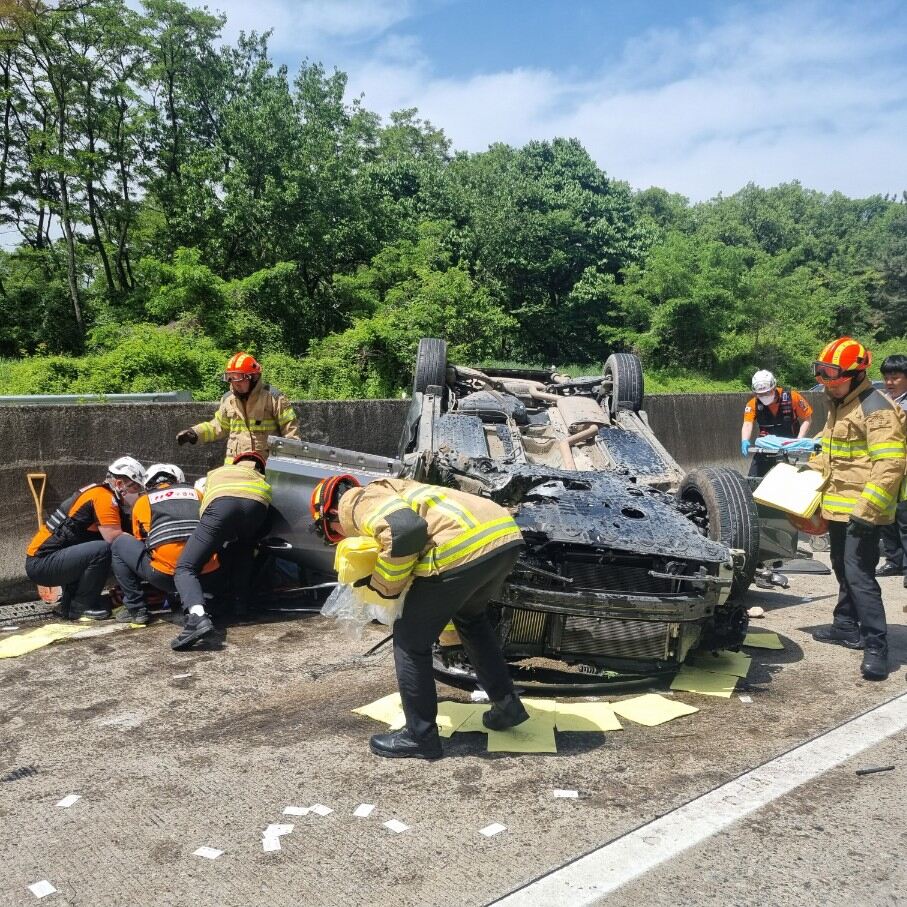 대구 달성 부근 중부내륙지선 달리던 SUV 차량 전복‥운전자 다쳐