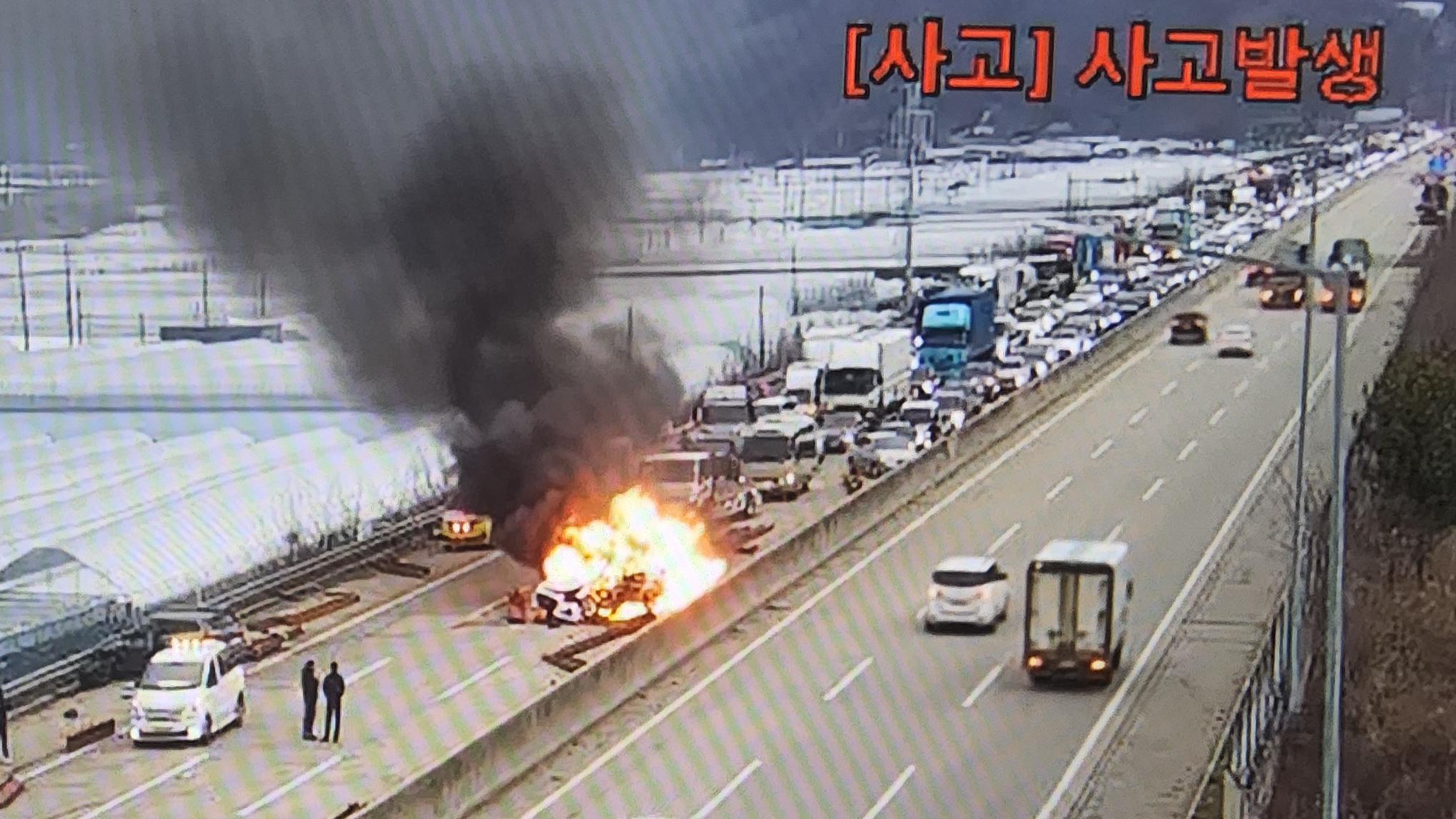 사진 제공 경북소방본부2월 23일 오후 5시 반쯤 경북 김천시 경부고속도에서 서울 방향으로 달리던 화물차에 실려 있던 10톤가량의 철제 파이프 더미가 반대편 도로로 떨어졌습니다.부산 방향으로 가던 차량 3대를 덮쳤고 그중 승용차 한 대에 불이 나 차를 모두 태운 뒤 30분 만에 꺼졌습니다.운전자 등 5명이 다쳐 병원으...