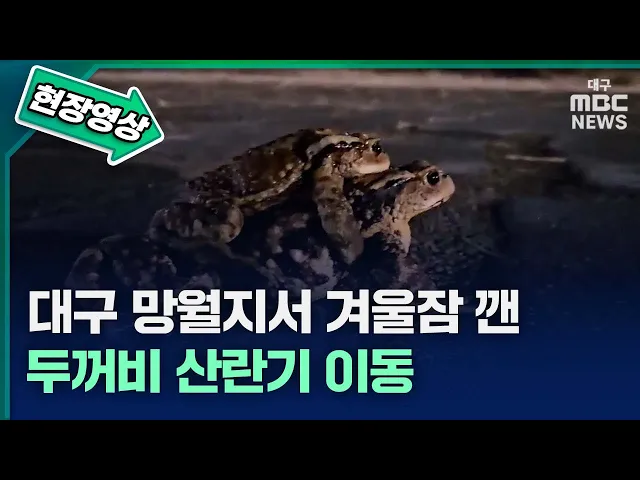 따뜻한 날씨에 두꺼비들이 2023년보다 보름 정도 일찍 겨울잠에서 깨어나 알을 낳기 위한 이동을 시작했습니다.대구 수성구는 두꺼비 집단 산란지인 망월지에서 암컷과 수컷 성체 두꺼비가 포집한 상태로 이동하는 모습이 목격됐다고 밝혔습니다.망월지 일대에는 매년 봄이 되면 욱수산에 사는 성체 두꺼비 천여 마리가 산...