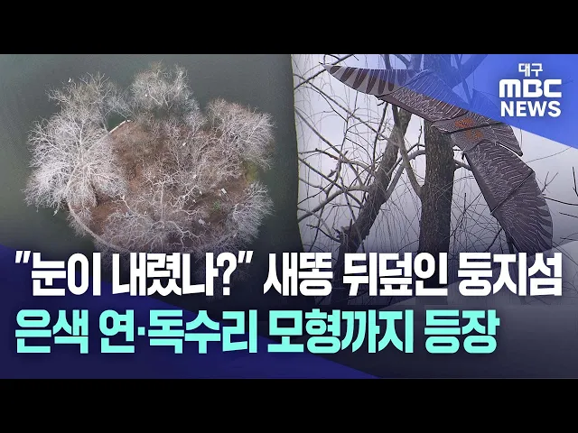◀앵커▶대구의 대표적인 휴식 공간으로 수성못이 꼽히는데요. 수성못 안에 있는 둥지섬은 울창한 숲을 자랑했습니다만 겨울 철새인 민물가마우지떼가 몰려들며 하얗게 말라죽어가고 있습니다. 봄이 와도 떠나지 않고 둥지섬에 터를 잡고 빠르게 번식해서인데 수성구가 '둥지섬 살리기'에 나섰습니다.손은민 기자입니다.◀기자...