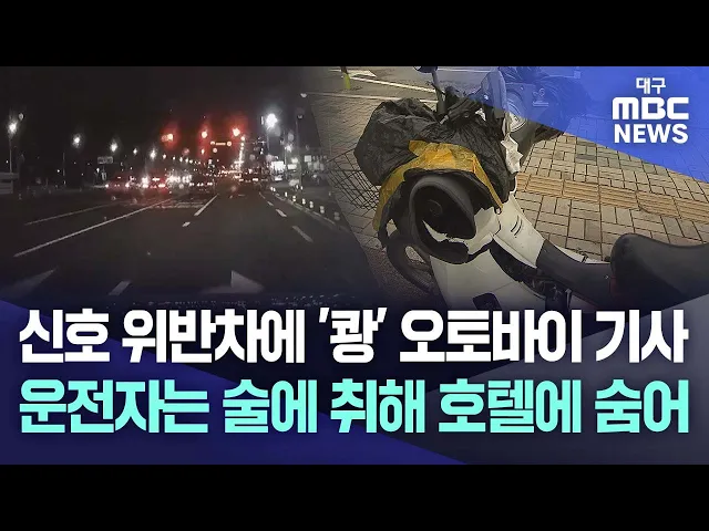 ◀앵커▶오토바이로 배달 일을 하던 50대 가장이 외국인이 몰던 차에 뺑소니를 당해 중태에 빠졌습니다.사고를 낸 외국인 운전자는 구호조치도 없이 차를 버리고 달아났다가 16시간 만에 잡혔는데, 술에 취한 상태였습니다.손은민 기자입니다.◀기자▶대구 시내의 한 교차로.교차로 정지선에서 차들이 잇달아 멈추는데 갑자기 ...