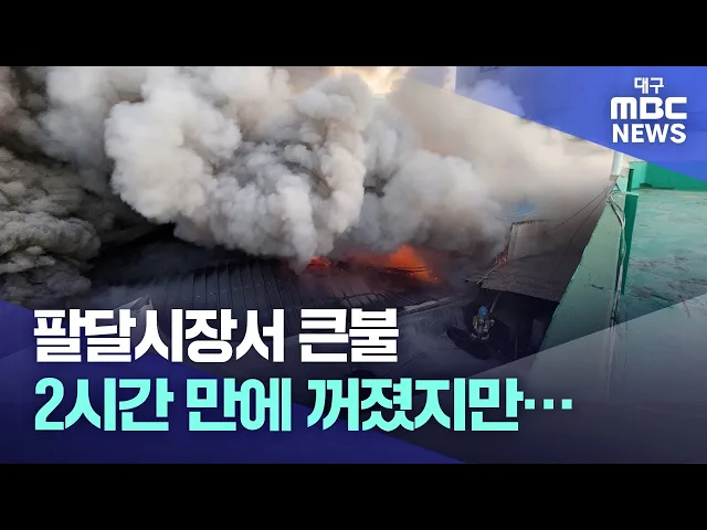 ◀ 앵 커 ▶12월 27일 오후 대구 팔달시장에서 큰불이 났습니다. 다행히 다친 사람은 없었지만, 상가 6곳 이상이 불에 탔고, 시커먼 연기 기둥이 솟구치면서 근처 주민들도 크게 놀랐습니다.취재기자 연결해 자세한 소식 들어보겠습니다.변예주 기자, 현재 상황 전해주시죠.◀ 기자 ▶네, 불이 난 건 오늘(27일) 오후 4시 50분...
