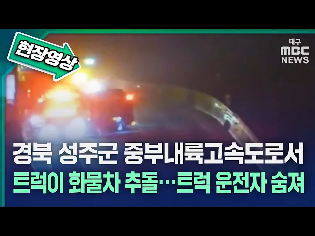 12월 8일 오전 2시 반쯤 경북 성주군 초전면 중부내륙고속도로 창원 방향 성주휴게소 근처에서 60대 남성이 몰던 3.5톤 트럭이 앞서가던 5톤 화물차를 추돌했습니다.이 사고로 트럭 운전자가 차량 사이에 끼여 병원으로 옮겨졌지만 숨졌습니다.경찰은 정확한 경위를 조사 중입니다.(영상 제공 송영훈)