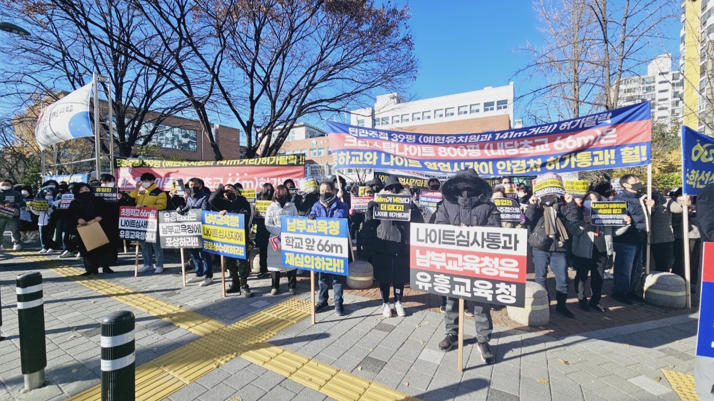 사진 제공 나이트클럽 반대 주민초등학교와 66m 떨어진 거리에 대규모 나이트클럽이 다시 문을 여는 것과 관련해 학부모와 인근 주민들이 11월 30일 대구시 남부교육지원청 앞에서 반대 집회를 열고 거세게 항의했습니다. 이들은 "교육청이 학생들 등·하교 시간과 영업시간이 겹치지 않고 주변에 주점이 있다는 이유로 교육...