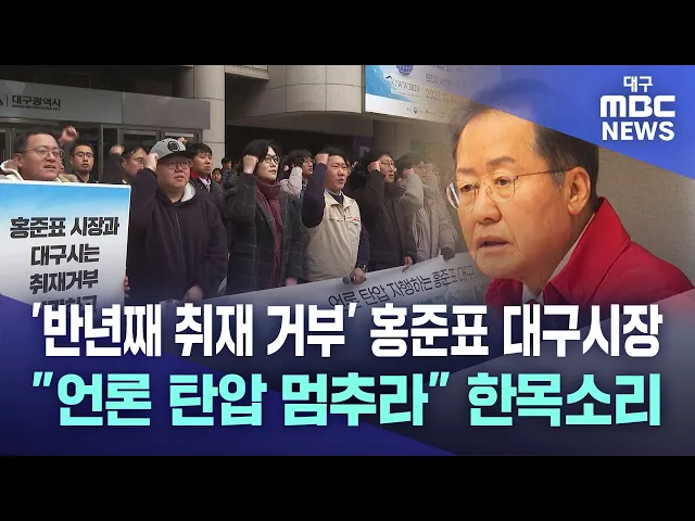 ◀앵커▶홍준표 대구시장이 언론사를 상대로 취재 거부와 고소·고발전을 이어가고 있는 가운데 대구·경북 언론노조와 시민단체가 기자회견을 열고 이를 강하게 비판했습니다.이들은 대구시가 언론의 자유를 부정하고 시민의 알 권리를 무시하고 있다며 공동 행동에 나서겠다고 목소리를 높였는데요, 대구시는 이번 사안과 관...