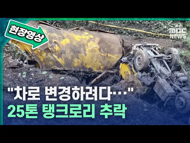"차로 변경하려다···" 경부고속도로서 25톤 탱크로리 추락