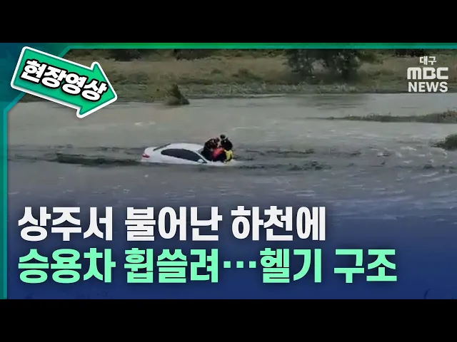 상주서 불어난 하천에 승용차 휩쓸려···헬기 구조