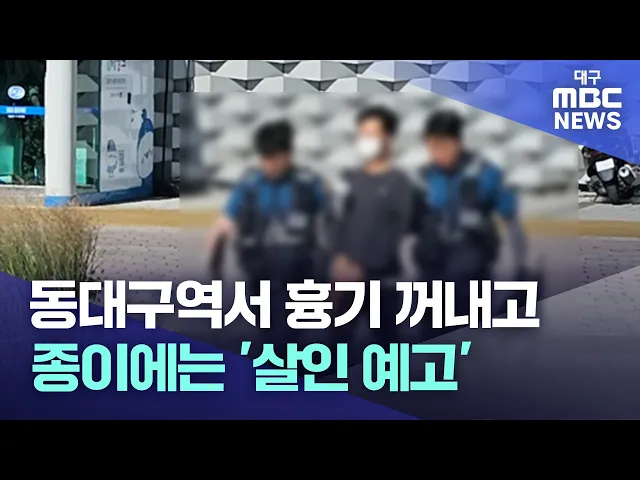 ◀앵커▶'묻지마 흉기 난동'으로 불안이 큰 가운데 8월 7일 동대구역에서 흉기를 들고 있던 30대 남성이 경찰에 붙잡혔습니다. 이 남성은 살인 예고 글을 적은 종이도 지니고 있었는데, 위험천만한 상황이었습니다.흉기를 든 남성이 현행범으로 체포된 건 대구경북에서는 처음인데요.지난 주말 야구장에 이어 대구 공항에 테...