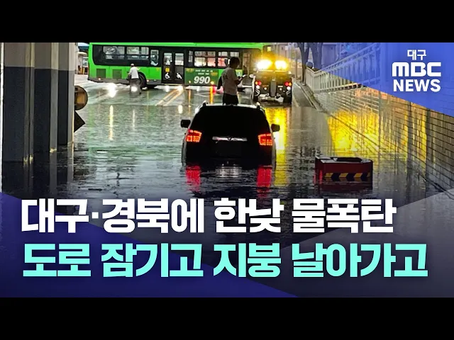 대구 한낮 '물 폭탄'···도로 잠기고 지붕 날아가고