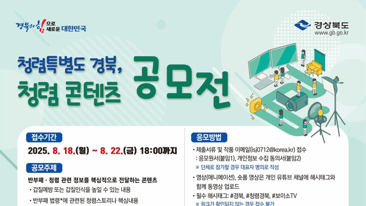 대구 동구가 '제5회 대구 동구 관광 사진 공모전'을 열고 오는 22일 작품을 받습니다.동구의 축제나 문화 행사, 관광 명소 등을 찍은 디지털 사진이 대상이고, 2024년 8월 1일 이후 직접 촬영한 사진을 1인당 2점까지 낼 수 있습니다. 입상한 작품은 동구 관광 가이드북과 지도, 영상물 등 다양한 홍보 콘텐츠로 활용되고 ...