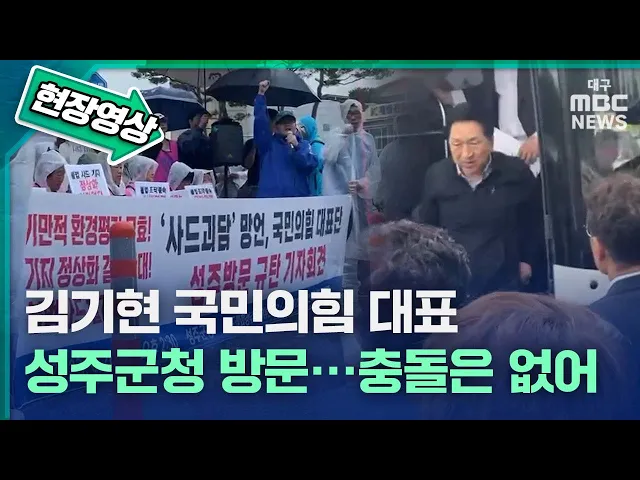 국민의힘 지도부가 사드 기지 환경영향평가 완료와 관련해 성주를 방문하자 반대 주민과 단체들이 규탄 집회를 하는 등 강하게 반발했습니다.김기현 대표 등 국민의힘 지도부는 6월 26일 오후 3시쯤 김기현 대표 등 국민의힘 지도부와 임이자 경북도당위원장 등은 성주군청에서 열린 사드 기지 환경영향평가 승인 관련 브리...