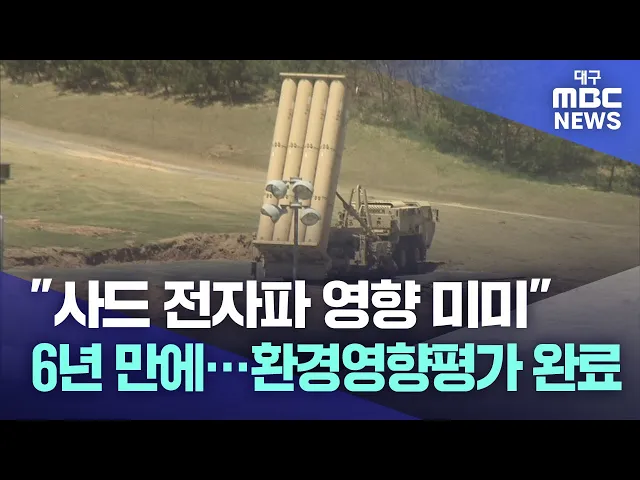 ◀앵커▶고고도 미사일 방어체계, 사드(THAAD)가 임시 배치된 성주 주한미군 기지에 대한 환경영향평가가 마무리됐습니다. 사드 기지 건설을 위한 행정절차가 6년 만에 끝났습니다.가장 걱정했던 사드 전자파는 '문제가 없다'고 결론 나 기지 정상화에 속도가 붙을 전망인데요,소성리 주민과 반대 단체들은 "정부 발표를 믿을...