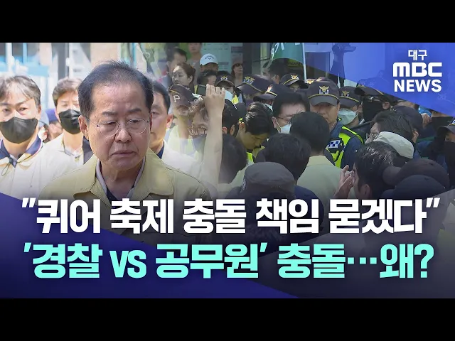◀앵커▶지난 주말 대구에서 열린 퀴어축제에서는 경찰과 대구시 공무원이 충돌하는 사상 초유의 사태가 벌어졌습니다.축제가 끝난 이후에도 법적 공방까지 거론되며 대구시와 경찰의 갈등은 확산하는 모양새입니다.홍준표 시장은 대구 경찰청장에게 책임을 묻겠다고 여러 차례 공언하고 있는데요.대체 어떻게 이런 일이 벌어...