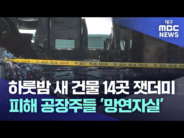 ◀앵커▶6월 15일 서대구 산업단지에서 난 큰 불은 9시간이 넘도록 건물 14개동, 피해업체 25곳을 태우고서야 겨우 꺼졌습니다. 섬유 등 인화 물질이 많은 데다 샌드위치 패널 공장이 밀집한 탓에 피해가 커졌습니다.오늘 경찰과 소방, 국과수가 합동 현장 감식을 했지만 왜 불이 났는지 아직 파악하지 못했는데요,다음 주 2...