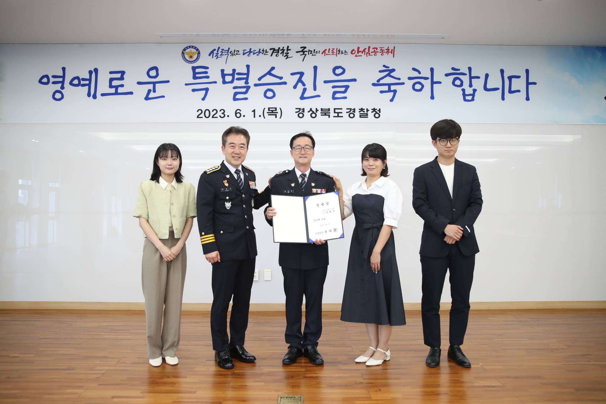 윤희근 경찰청장이 6월 1일 경북경찰청을 방문해 건설 현장 불법행위 수사에 공을 세운 경찰관을 특진 임용했습니다.경위에서 경감으로 1계급 특진한 반부패·경제 범죄수사대 소속 김희근 수사관은 2022년 12월 사측을 협박해 수수료 인하 합의서 작성을 강요한 혐의 등으로 화물연대 노조 간부 9명을 검거한 공적을 인정받...