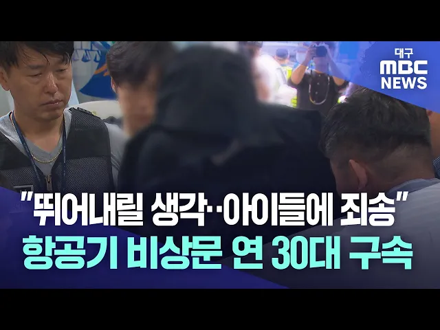 항공기 비상문 강제로 연 30대 구속···"아이들에 죄송"