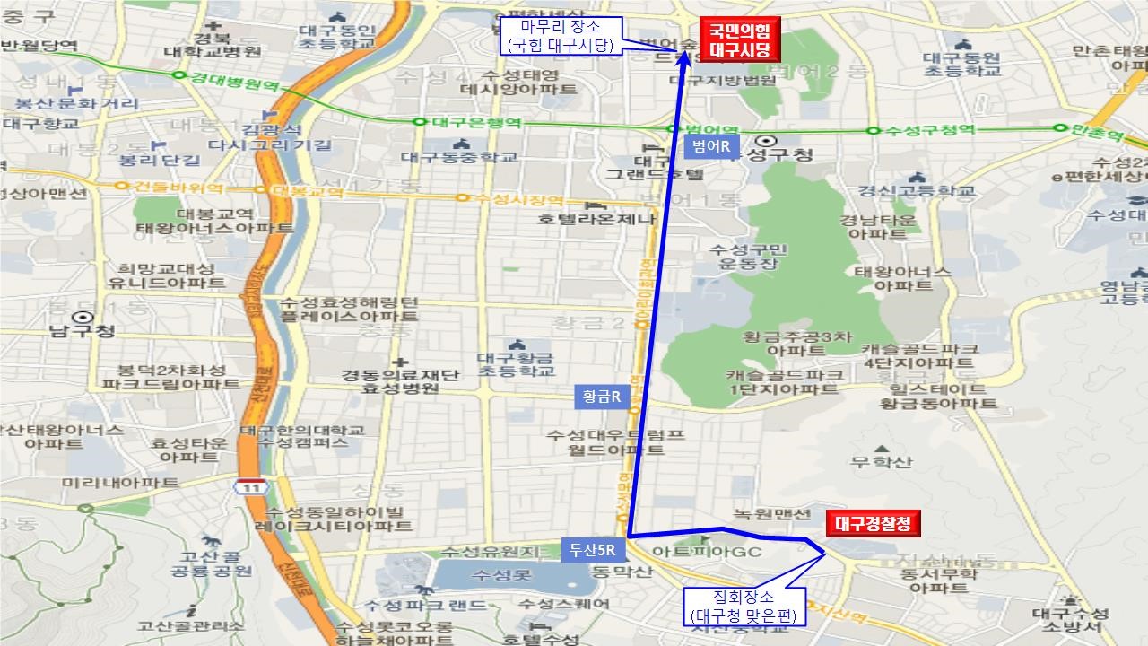 5월 11일 건설노조의 대규모 집회로 퇴근길 동대구로 일대 교통혼잡이 예상됩니다.대구경찰청에 따르면, 민주노총 건설노조는 5월 11일 오후 6시 반부터 대구 수성구 지산동 대구경찰청 맞은편 도로에서 '노조 탄압 규탄 결의대회'를 열고 오후 7시 반부터 대구청에서 두산오거리, 황금네거리, 범어네거리를 지나 국민의힘 ...