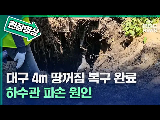 5월 10일 오후 5시 반쯤 대구 북구 도시철도 3호선 팔달역 인근 공터 공중화장실 앞에서 길이 2m, 폭 3m, 깊이 4.2m 규모의 땅 꺼짐 현상이 발견됐습니다.근처를 지나던 시민이 신고해 확인됐고 다행히 인명피해는 없었습니다.땅 꺼짐은 노후 하수관로가 파손돼 물이 새면서 지하 공동(빈 공간)이 생기고 지반 침하가 발생...