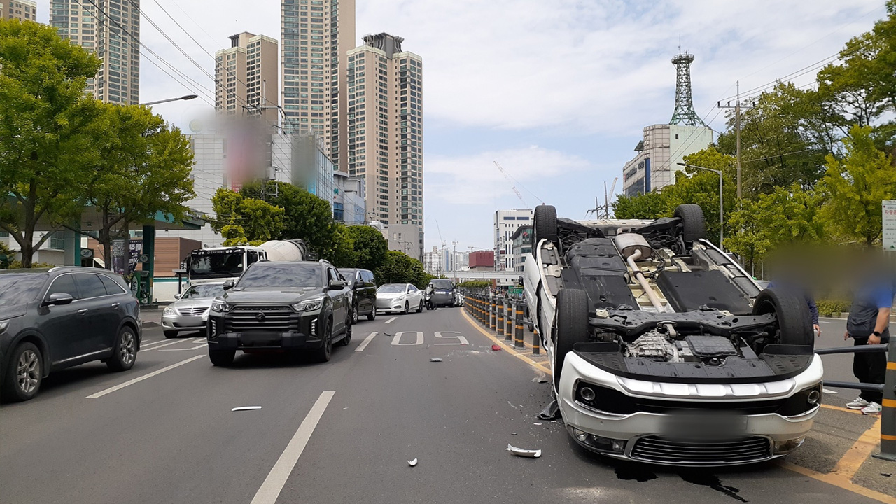 대낮 20대 만취 운전자, 앞차 추돌 후 전복···2명 다쳐