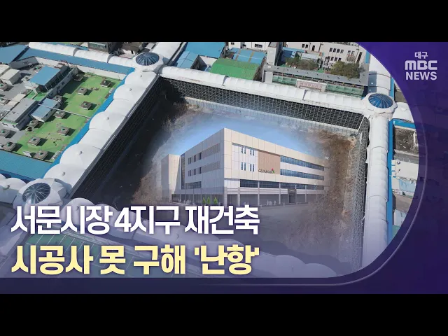 ◀앵커▶2016년 큰불이 났던 서문시장 4지구가 재개를 준비하고 있습니다.2026년을 목표로 재건축 인허가 절차를 밟고 있습니다.공사는 2023년 하반기 시작해 3년 안에 완공하겠다는 계획입니다.불이 나고 첫 삽을 뜨기까지 6년 넘게 걸렸습니다.그런데 공사를 맡겠다는 건설사가 없어서 골머리를 앓고 있다고 합니다.서문시...
